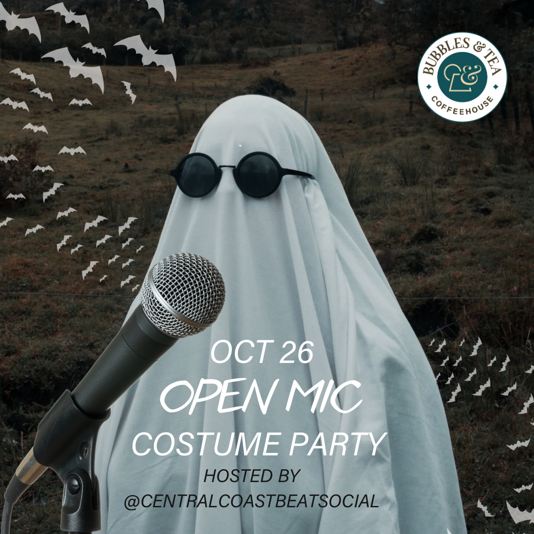 Get ready for a night of fun and talent at Bubbles and Tea! We’re hosting an Open Mic Night Costume Party, and you’re all invited! Costumes are optional, but we highly encourage them—let’s make it festive! Halloween 🎃